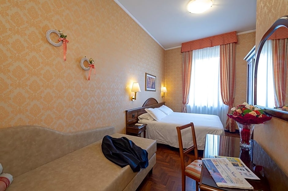 Bright room with parquet flooring and work desk. Additional features include air conditioning and soundproofed windows. Wi-Fi is free.